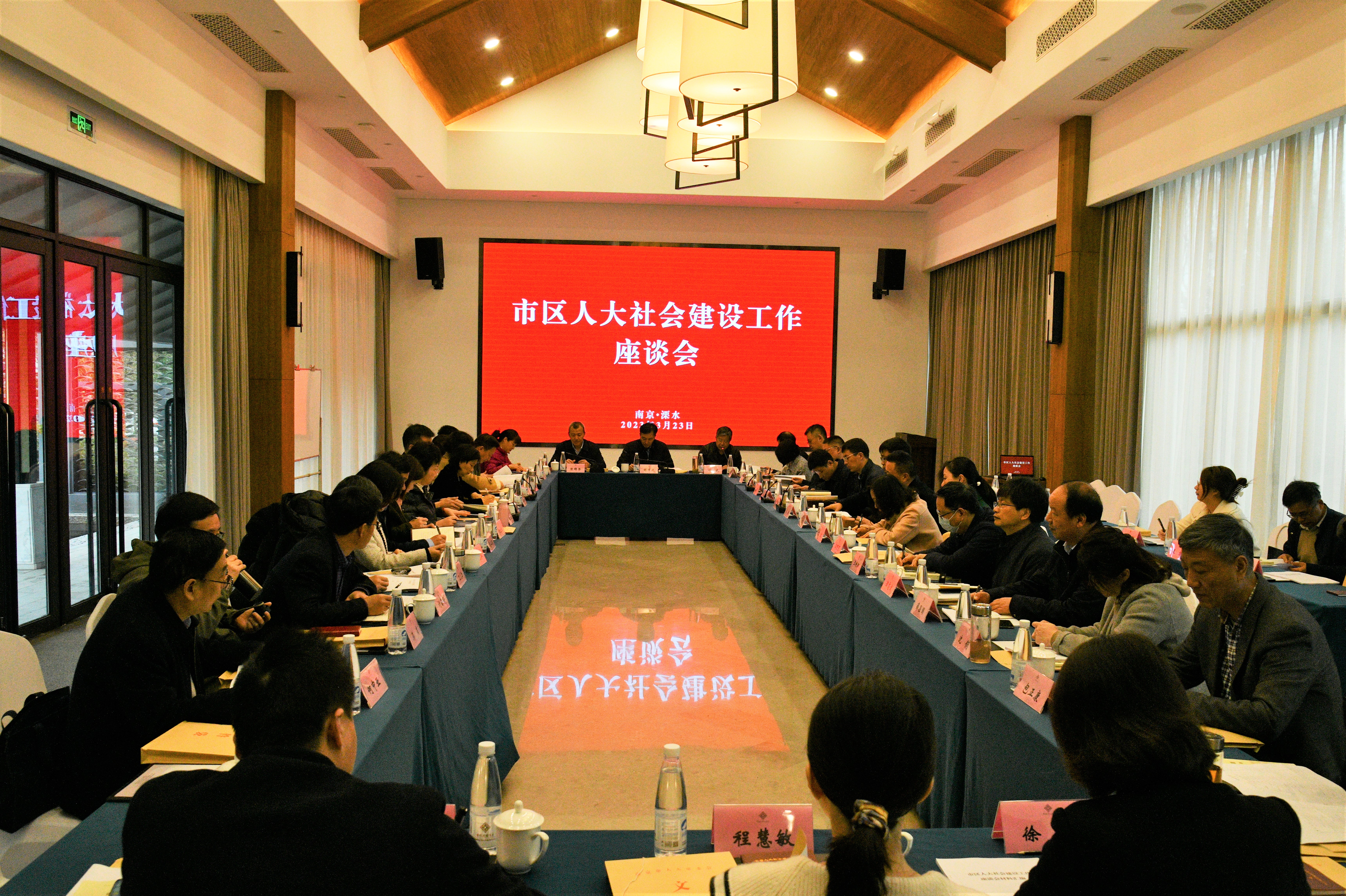3月22日至23日,市区人大社会建设工作座谈会在溧水区召开。市人大常委会副主任胡万进出席会议并讲话,市人大常委会副秘书长叶斌主持会议。
