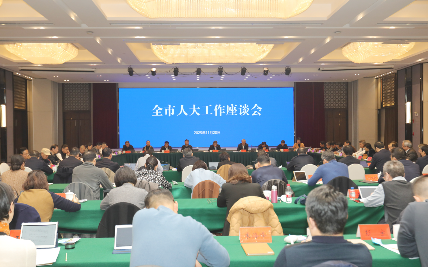 1120日,全市人大工作座谈会召开。会议聚焦贯彻落实党的二十届四中全会精神,总结今年以来全市人大工作情况,围绕做好“十五五”开局之年人大各项工作谋划思路举措。市人大常委会主任吕德明主持会议并讲话,市人大常委会领导沈文祖、杨学鹏、胡万进、戴华杰、刘伟、许明、谈健、方中友出席会议。