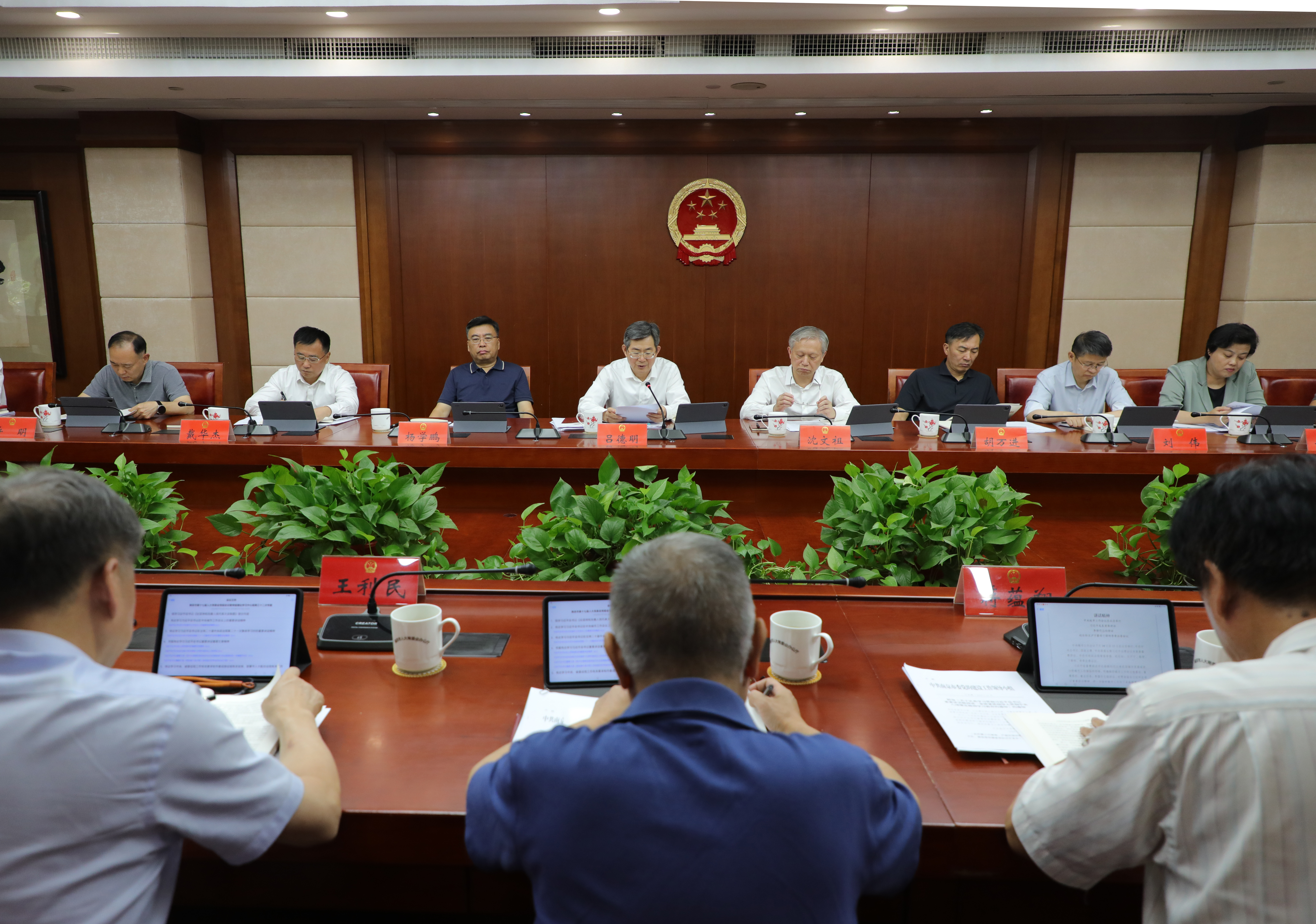 7月18日,市人大常委会党组会议暨党组理论学习中心组专题学习会议召开,深入学习贯彻习近平总书记关于巡视工作的重要论述,研究市人大常委会党组配合中央和省委巡视工作的有关安排,学习习近平总书记近期重要讲话重要文章精神。市人大常委会党组书记吕德明主持会议并讲话。市人大常委会领导沈文祖、杨学鹏、胡万进、戴华杰、刘伟、许明、谈健、方中友参加会议。
